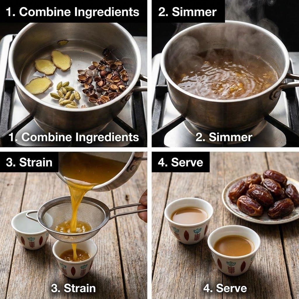 Many people ask about caffeine-free coffee alternatives. While traditional Qishr does contain caffeine (though less than a standard cup of drip coffee), you can make a purely herbal version. simply omit the husks/coffee and increase the ginger. This creates a “Yemeni Ginger Tea” that carries the same flavor profile without the buzz.